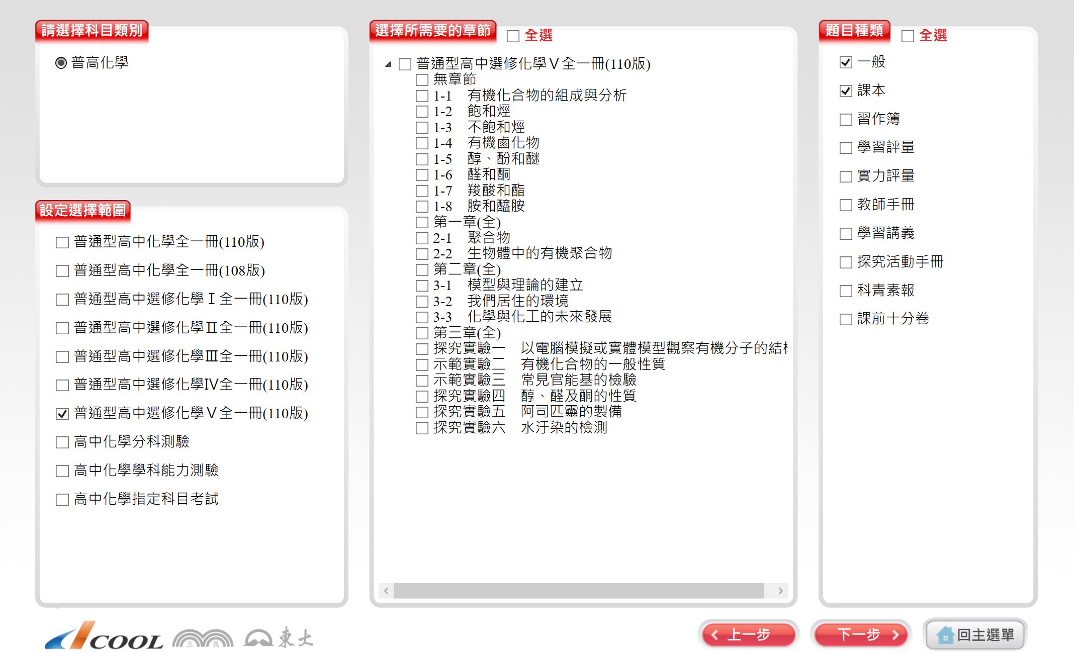 111學年下學期 高中命題光碟 三民版 化學科(全、選修I、選修II、選修III、選修IV、選修V)(108課綱) 題庫光碟